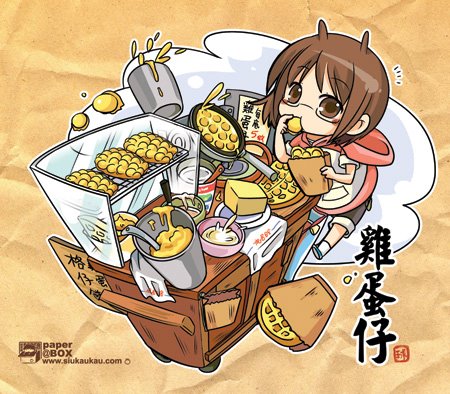 每次放學一出門口,就有一個年約六十嘅阿伯拉住架車仔,一路唱住馬小玲一路將蛋漿倒入模具之中,不消一會,新鮮熱辣的雞蛋仔就出爐了。
